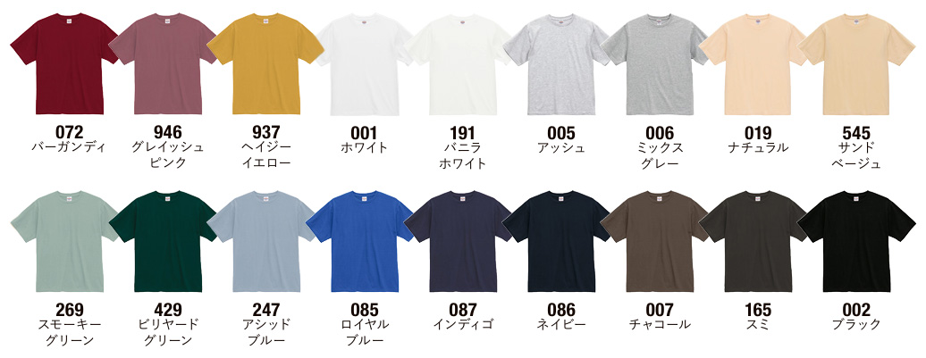 United Athle 5001-01 5.6オンス ハイクオリティーTシャツの色見本